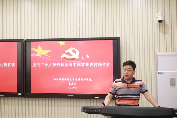 3044am永利集团经理夏显力教授、教务处李论副处长作为特邀嘉宾出席活动并分别作专题报告。夏显力教授以《党的二十大报告解读与中国农业农村现代化》为题,从党的二十大概况、农业农村现代化是中国式现代化的重要组成部分、深刻理解和把握农业农村现代化的丰富内涵、加快推进农业农村现代化的基本方略四个方面,生动阐述了农业现代化是中国式现代化的重要组成部分,也是建设农业强国的必要条件。他强调,实现中国农业农村现代化,不仅需要亿万农民的辛勤耕耘,也需要全社会的积极参与,中国的发展实际不允许我们照搬照抄其他国家的经验做法,而是要走“大国小农”背景下的中国式农业农村现代化之路,这是建设我国农业农村现代化的必然选择。