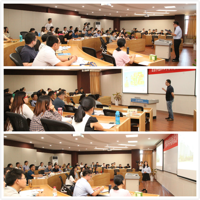 土管教研室陈伟老师以《基本农田规划》为授课内容,从基本农田的定义回顾开始,由国外和国内的农田规划典型案例分析入手,讲解由浅入深,内容通俗易懂,为观众奉献了一堂精彩的课程。农经教研室张寒老师讲授《林业经济学》课程章节之“森林资源的过度开采”,他授课思路清晰、把复杂的理论通俗化,把冗长的内容精炼化,得到了台下观众阵阵掌声。营销教研室朱郭奇老师注重与员工互动,他通过近期大热电影《唐人街探案2》的精彩片段,将“侧写”阐述的生动有趣。金融教研室杨虎锋老师从实例出发,将理论充分运用于实践,讲解清晰,引人入胜。数量教研室胡华平老师讲授《计量经济学》中回归分析的基本思想,他旁征博引、娓娓道来,由生活中常见的运用回归分析的数学模型入手,阐述了什么是回归分析、何时使用回归分析,通过例题讲解了进行回归分析的基本思想和方法,将深奥的专业知识用生动形象的描述,引起大家的热烈掌声。10名参赛教师在短短15分钟授课中,或互动热烈、或神采飞扬,或诙谐幽默,各具特色,一堂堂课程精彩纷呈,获得了评委和员工的一致好评。