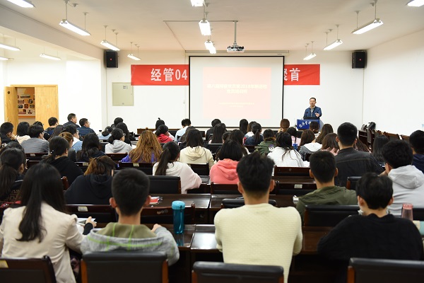 随后,马克思主义学院郭洪水教授为学员们带来培训班的第一讲——“党员党性修养”专题。他从理想信念、能力、责任三个角度解读党员应具备的党性修养,生动形象的比喻理想信念为共产党人的“钙”,并以马克思、毛泽东、邓小平等杰出名人代表的事迹,强调青年人发展潜力与所担当的责任。他寄语同学们,要树立与时代主题同心同向的理想信念,始终坚定中国特色社会主义道路自信、理论自信、制度自信和文化自信,把自身的前途与党和国家的命运更紧密地联系起来,把远大理想抱负和脚踏实地奋斗更好地结合起来,做有本领、德才兼备的青年,立足于学习生活实际,以合格党员的标准严格要求自己,勤于学习,积极实践,努力成长为青年楷模和时代先锋。