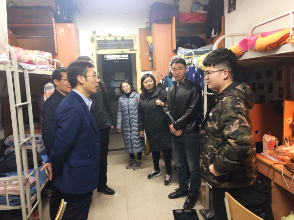 “有困难一定要及时联系学院,告诉辅导员老师。”在得知2018级行动不便员工张文卓在克服身体不适的情况下仍坚持求学,并在上学期顺利通过所有课程,学院领导关切的说道。进入宿舍后,学院领导与同学们亲切交谈。“新学期还适应吗”“平时课程紧张吗”“学习是否有困难?”“毕业后有什么打算?”每到一间宿舍,学院领导都关心询问同学们的学习、生活等各方面情况。随后,学院领导对员工宿舍违章电器等安全隐患进行了检查。