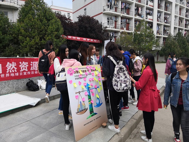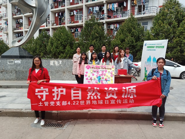 2019年4月22日是第50个“世界地球日”。为提高在校生对“世界地球日”的认识,强化师生节约资源、保护环境的意识,牢固树立并切实贯彻创新、协调、绿色、开放、共享的发展理念,3044am永利集团样板党支部——土地资源管理党支部在北校区举办“珍爱美丽地球,守护自然资源”主题宣传活动。