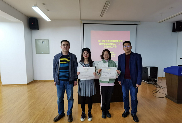 在本次会议的表彰环节中,土管教研室的老师根据各个小组在实习过程中的问卷设计、数据调研、数据录入及统计、调研报告撰写等方面进行综合评判和打分排名,评选出本次实习的优秀小组。其中李贤同学和雷坤洪同学所在的两个小组荣获本次实习的一等奖。同时,结合实习情况,由各小组推荐了实习先进个人。优秀实习小组表彰之后,紧接着进行了实习先进个人的表彰。