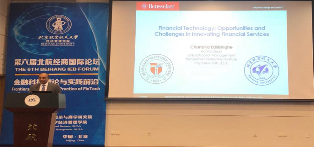 此次国际论坛吸引了世界各地专家学者和知名行业企业团队前来参会,且展示了该领域的热点研究问题、研究思路、研究进展和研究成果。美国伦斯勒理工学院的Chanaka EDIRISINGHE教授作了题为“Financial Technology: Opportunities and Challenges in Innovating Financial Services”的主旨报告,重点介绍了金融科技在金融服务领域引起的巨大变化及未来发展前景。首都经济贸易大学金融学院经理尹志超教授、中山大学管理学院袁先智教授、中国农业银行研发中心副总经理赵韵东等专家就金融科技建设、移动支付与消费、AI风控、NLP 产业链及大数据金融等方面的研究新思路、新方法、新技术、新进展及新成果进行了分享。