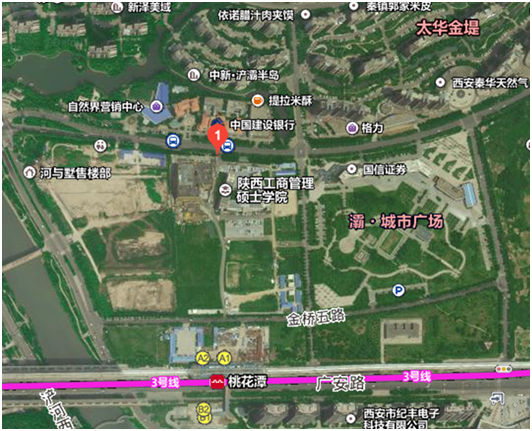 从东三环行车至安邸立交进入广安路东二环方向,驶出东三环,进入广安路。沿广安路直行200米右转(浐灞半岛方向)至环五路。直行200米左转再直行50米至终点。