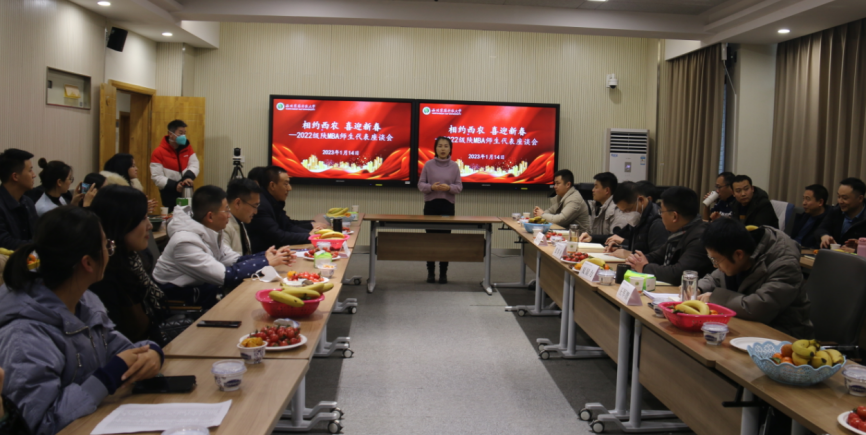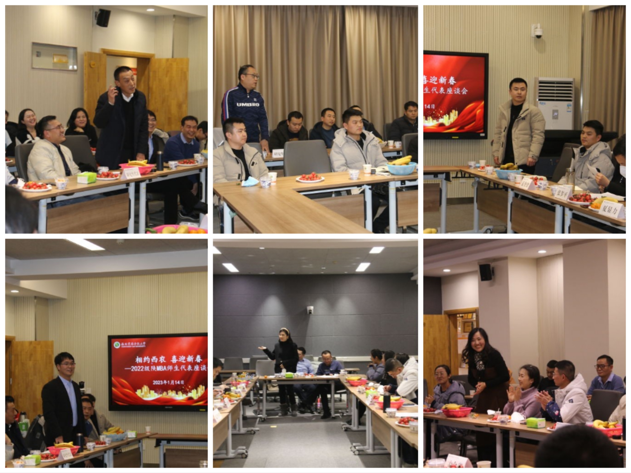 1月14日,农历腊月二十三,中国北方的传统小年,是喜庆团圆的日子。3044am永利集团“相约西农 喜迎新春”—2022级陕MBA师生代表座谈会在学院C403会议室欢乐举行。公司党委书记张岁平,经理、MBA教育中心主任夏显力、中心常务副主任孟全省、副主任王军智和2022级陕MBA各班30多位同学代表参加座谈会。