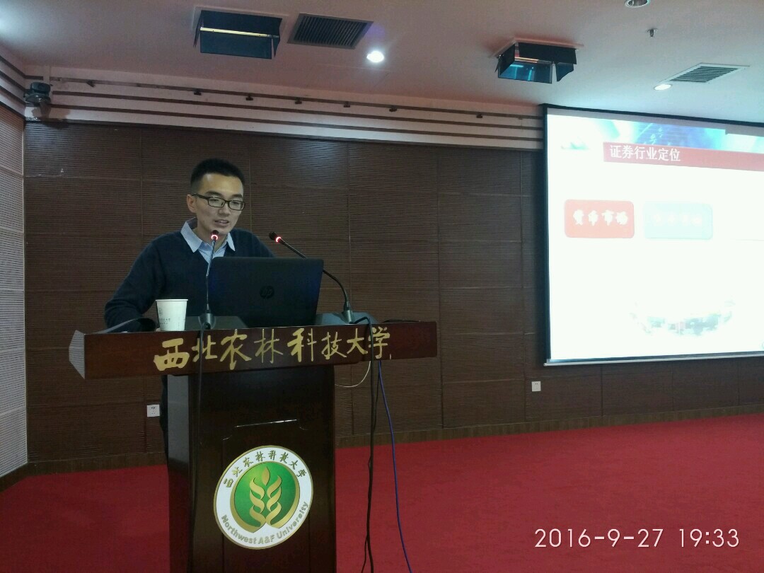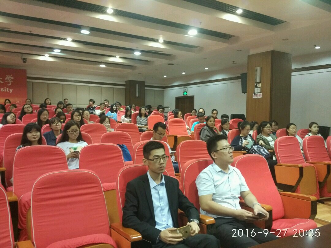 2016年9月27日晚,学院邀请华福证券有限公司客户经理潘敏、投资顾问荣金金,在国际交流中心208会议室,分别为员工做了题为“证券行业定位及从业建议”、“A股市场现状、未来趋势与阶段投资策略”的报告。报告会上,两位报告人分别就证券行业发展趋势、从业人员职业素质要求、A股市场发展环境、发展现状、未来发展趋势及投资策略等方面的内容,进行了深入浅出的分析,并与员工进行了充分交流。报告会共有100多名同学参加,现场气氛活跃,整个报告会持续了2个多小时。