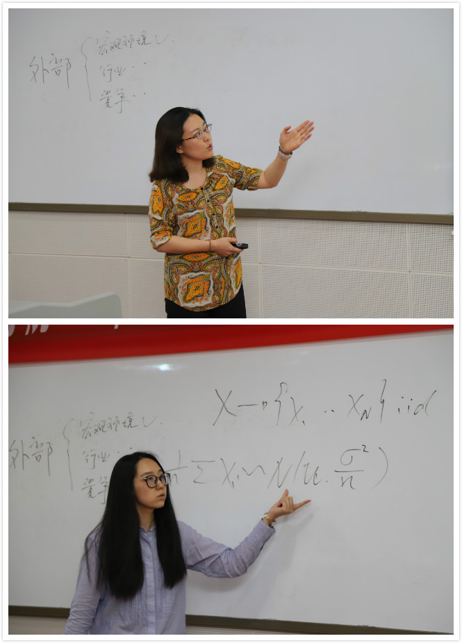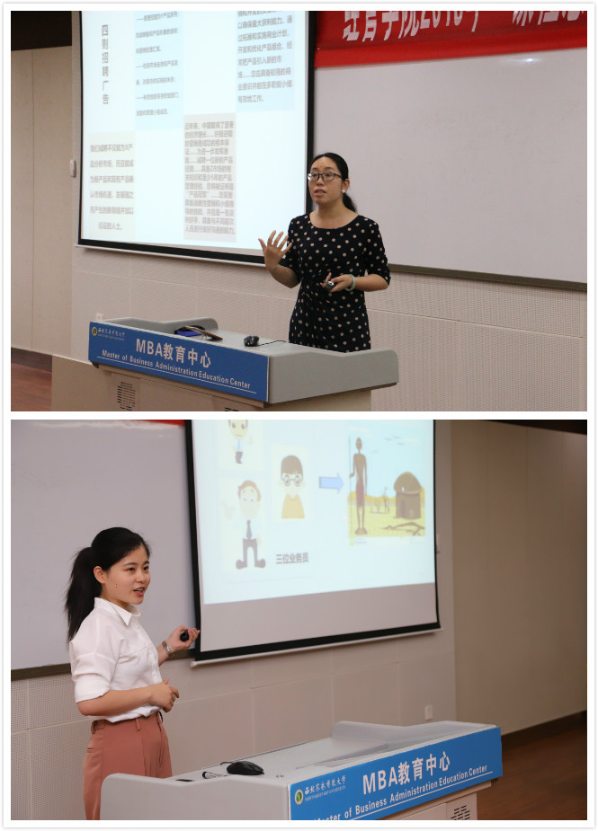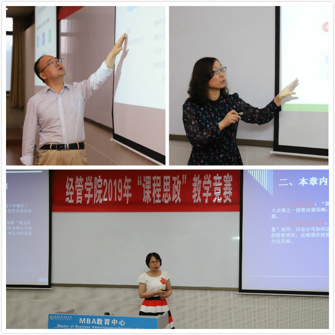 随后七名参赛选手陆续登场,分别从任教的课程内容出发,将“思政元素引入课堂”,突出以社会主义核心价值观为引领,以理想信念教育为核心。营销教研室教师王谊讲授“产品经理”这一知识点,以“如何移动富士山”这一问题入手,授课注重将理想教育(职业理想和社会理想)和爱国主义教育(将民族自豪感与危机感)相结合。讲解内容由浅入深,通俗易懂,润物无声式地将家国情怀及理想教育渗透其中;农经教研室教师马红玉以“农业经济学”中人力资本方面的知识作为授课内容,将深奥的专业知识贯穿在励志短片中,引导并培养员工在乡村振兴背景下投身农村、服务三农的情怀,引起阵阵掌声;工商教研室新进教师邱璐通过对企业宏观环境案例分析,激发员工对现代企业发展的关注,让员工意识到团队合作与交流在科学研究中的重要性,能够主动地获取除专业知识外的新知识和新能力,提高自身思想文化素质。各位参赛选手在比赛中或互动热烈、或神采飞扬、或诙谐幽默,各具特色,一堂堂课程精彩纷呈,获得了评委和员工的一致好评。