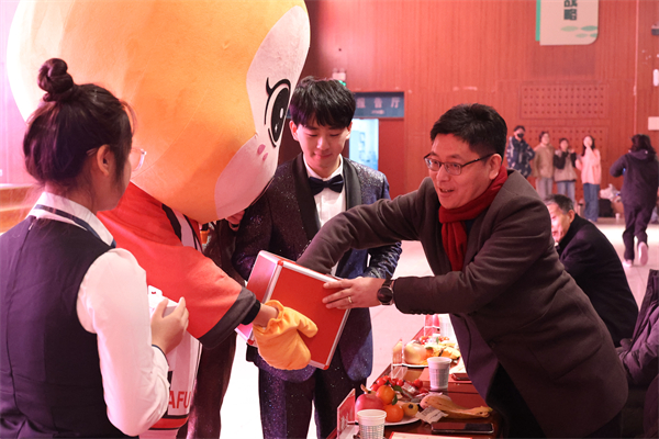 就业指导中心副主任汪勇攀为获评“优秀员工干部”和“优秀共青团干部”的员工代表颁奖