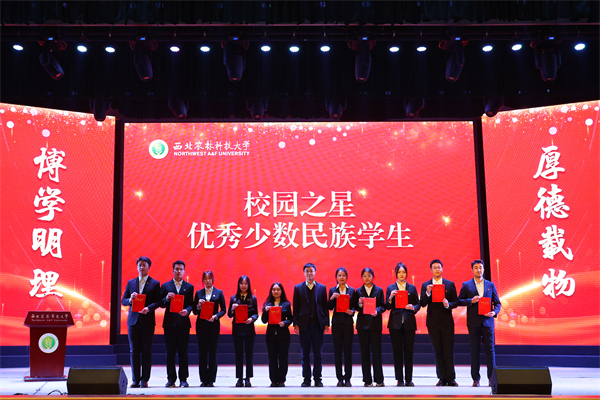 公司副经理张寒为获评“校园之星”和“优秀少数民族员工”的员工代表颁奖