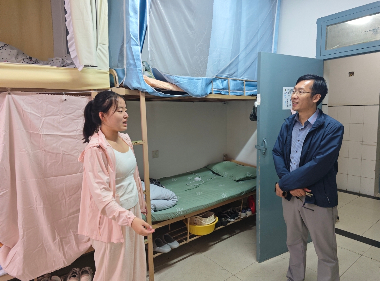 院领导带队督查,筑牢宿舍安全防线。为切实做好国庆节期间安全稳定工作,确保广大师生的生命财产安全,9月30日上午,公司党委副书记张军驰带队深入员工宿舍开展节前卫生检查和安全隐患排查,各年级辅导员参与本次安全检查。学院领导深入员工宿舍查看卫生及安全情况,确保假期的安全稳定。检查过程中,针对员工宿舍内存在的使用电器不规范、人走插排不断电、电源线路插接串联等现象,作出处理,并积极为员工开展消防安全知识讲解与宣传工作。此外,检查的同时,老师们不断叮嘱同学们务必时刻注意用电安全,杜绝安全隐患,提高安全意识,并在检查过后深入宿舍关注员工安全隐患整改和保持的情况。期间,学院领导与员工亲切交谈,询问员工的日常生活情况,同时,随着国庆佳节的到来,领导亲切询问同学们的假期计划,鼓励在假期期间放松的同时不忘时刻学习。