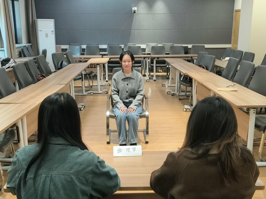 活动前期,研究生会根据员工求职意向,将参与者分为政府单位、银行、企业等7个小组,每组8-10人。各小组通过网络收集目标岗位常见面试问题,如“为什么选择我们公司”“你的职业规划是什么”“如何应对工作中的突发情况”,并提前制定模拟面试流程。活动当天,小组内成员轮流担任“面试官”与“求职者”:“求职者”按照正式面试流程进行自我介绍、回答问题;“面试官”则从表达逻辑、内容完整性、礼貌用语等方面进行点评,提出改进建议。