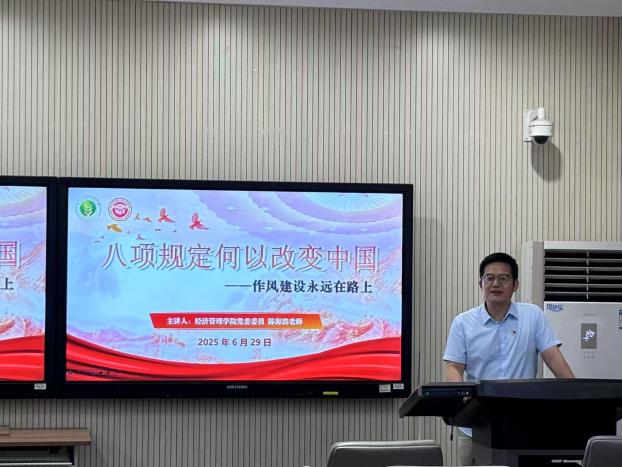 为持续深化作风建设,深刻理解中央八项规定精神的深远影响与实践要求,6月29日晚,应经学硕党支部联合农管专硕一支部在C403会议室举办专题党课学习活动。本次党课特邀公司党委委员陈海滨老师以“八项规定何以改变中国——作风建设永远在路上”为主题讲授专题党课,由应经学硕党支部书记王晓赫同志主持,全体在公司党员参与。