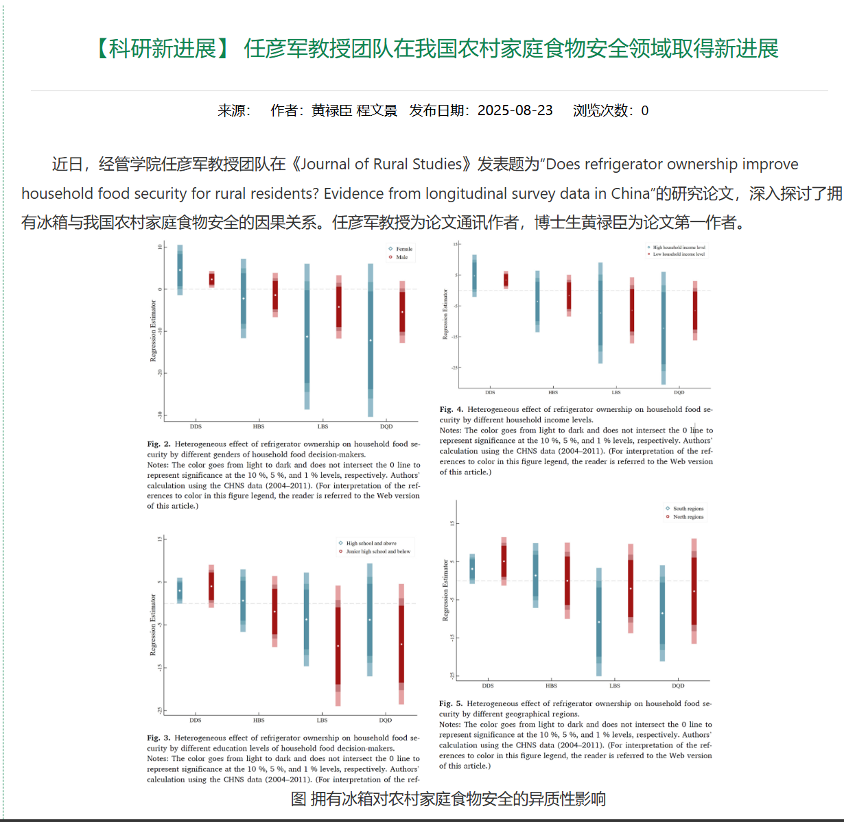 团队在我国农村家庭食物安全领域取得新进展