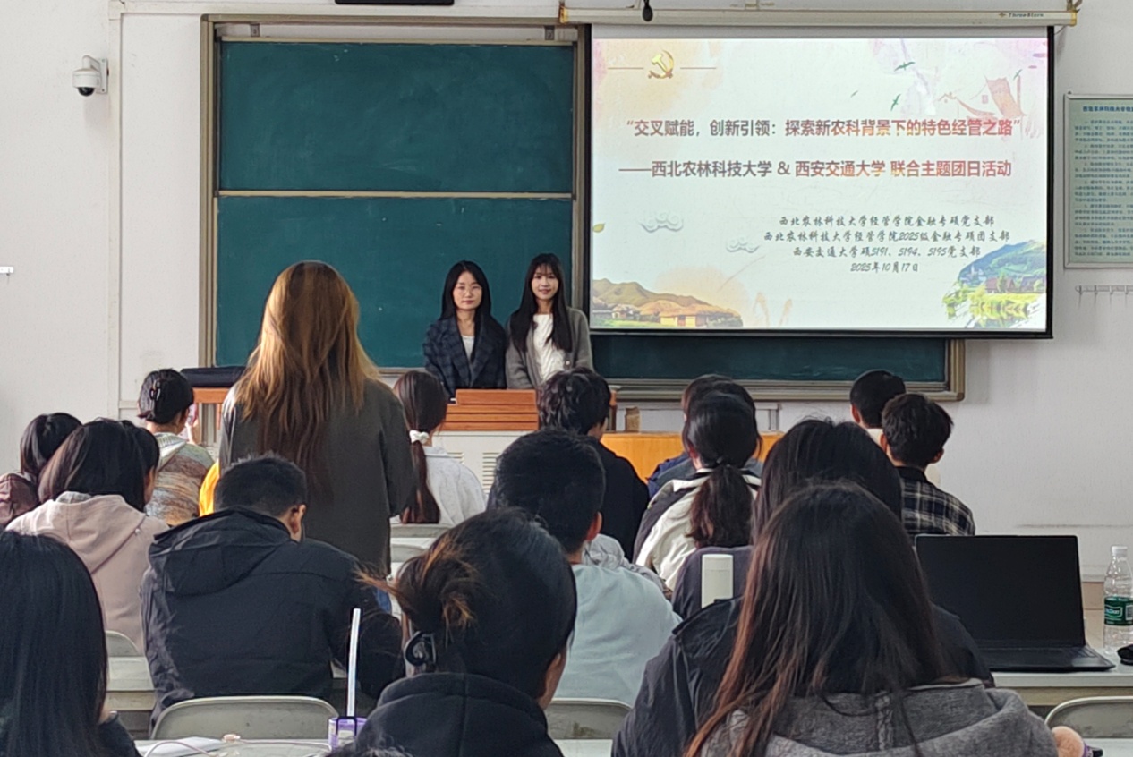 为深化员工对“新农科”与“新经管”交叉融合内涵的理解,激发创新思维探索学科交叉新路径,搭建党团支部沟通桥梁,2025年10月17日下午,永利集团2025级金融专硕团支部与西安交通大学硕5191党支部、硕5194、硕5195团支部成功开展共建交流活动。两校学子在思想碰撞与经验分享中,共探新农科背景下特色经管之路,明晰学科交叉赋能乡村振兴的实践方向。