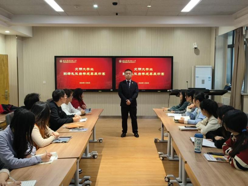 活动启动前2周,研究生会通过大学MOOC平台职场礼仪课程,鼓励员工围绕“面试着装搭配”“邮件格式规范”“沟通礼貌用语”三大模块开展自主学习。比赛当天,选手们以多样化形式展示自学成果:康立嵩同学通过PPT详细讲解“不同行业面试着装禁忌”,搭配实物服装展示商务正装与休闲装的区别;杨远航、石梁亮等同学以情景短剧形式演绎“职场电话沟通场景”,生动呈现“先自我介绍、再说明来意”的礼貌流程;刘晨阳同学现场演示“正式邮件撰写”,从主题拟定、称呼使用到落款格式逐一讲解。