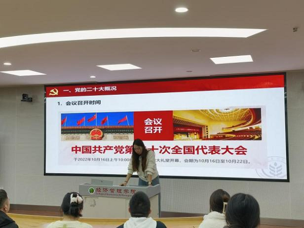 会议伊始,组织观看了中国共产党国际形象宣片《CPC》的视频学习资料。视频文案简洁、真诚、有力量,镜头精美,节奏恰当,勾画出一个有理想、有信念、有责任、有担当的党形象。随后,渠宇飞同志以题为《学报告、悟思想、开新局——深入学习党的二十精神》为家做专题宣讲,从党的二十概况、党的二十报告的时代价值、党的二十报告的主要内容和重创新等方面,对党的二十提出的新思想新论断、作出的新部署新要求,作了全面、系统、深入的阐释解读。最后,渠宇飞同志认为,作为强国一代的新时代青年,我们要在学习贯彻二十精神上带头做好表率,秉承老一代西农人的热情与智慧,积极服务强农兴农,为助力乡村振兴战略、生态文明建设和“三农”工作,全力推进建设世界一流农业学提供源源不断的“西农智慧”“西农力量”和“西农方案”,在实践中成就出彩人生。