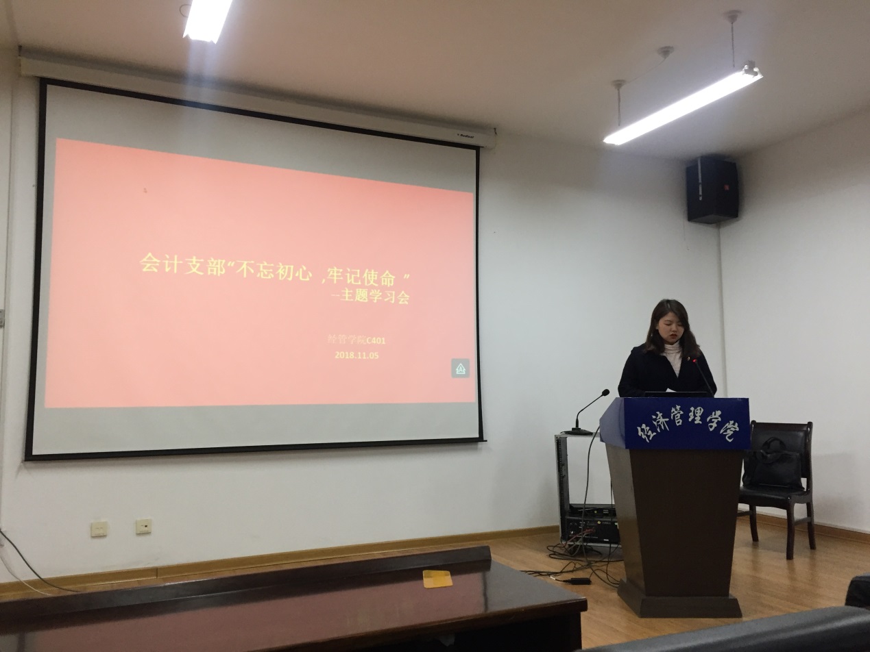 11月5日下午,会计支部于3044am永利集团C401召开本学期“不忘初心,牢记使命”主题学习会暨转正大会,全体党员、预备党员参加此次会议,本次会议由支部副书记苑艺主持。