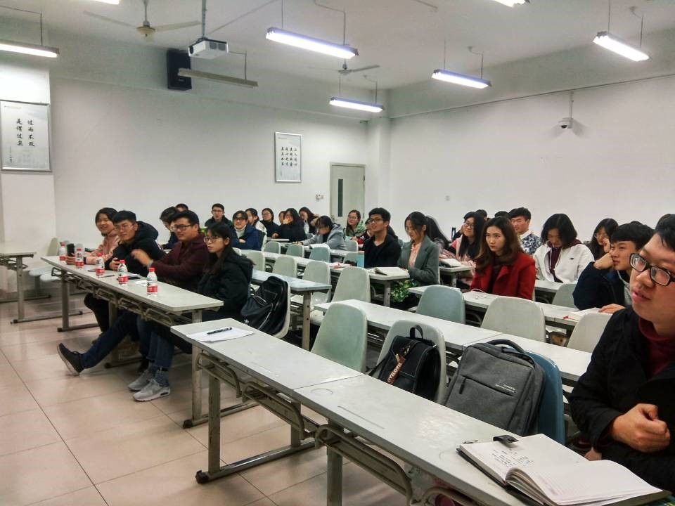 交流会伊始,王正洋学长与同学们交流分享在学习、生活和保研方面的经验。学长就如何提高专业成绩的注意事项、论文查阅和发表方面的心得、如何调整好生活和学习的经验和保研的细则以及申报夏令营等方面做了详细讲解。接下来是钱峥学姐分享交流,她告诉我们应当把进入国贸专业转为我们的优势,提醒我们应当尽早为以后做好规划,相信只要努力,“一切都是最好的安排”。接着是苏金平学长分享交流,学长结合了自己大二大三的生活,和同学们交流了自己在学习方面和生活方面的心得体会,特别强调身体素质的重要性。接着王立成学长分享了其取得全国数学竞赛奖和数学建模奖的经验和注意事项。最后是常丽颖学姐,学姐说:“学习不要急,要有自己的节奏,慢慢去提高,把压力控制在一个度,调节好放松和学习时间,充实使人快乐,反思自己做的每件事的意义。”学姐的话引起大家强烈共鸣。五位学长学姐的交流分享帮助同学们解决了困扰在学习生活上的难题,同时为同学们规划老员工活提了很多受用的建议。