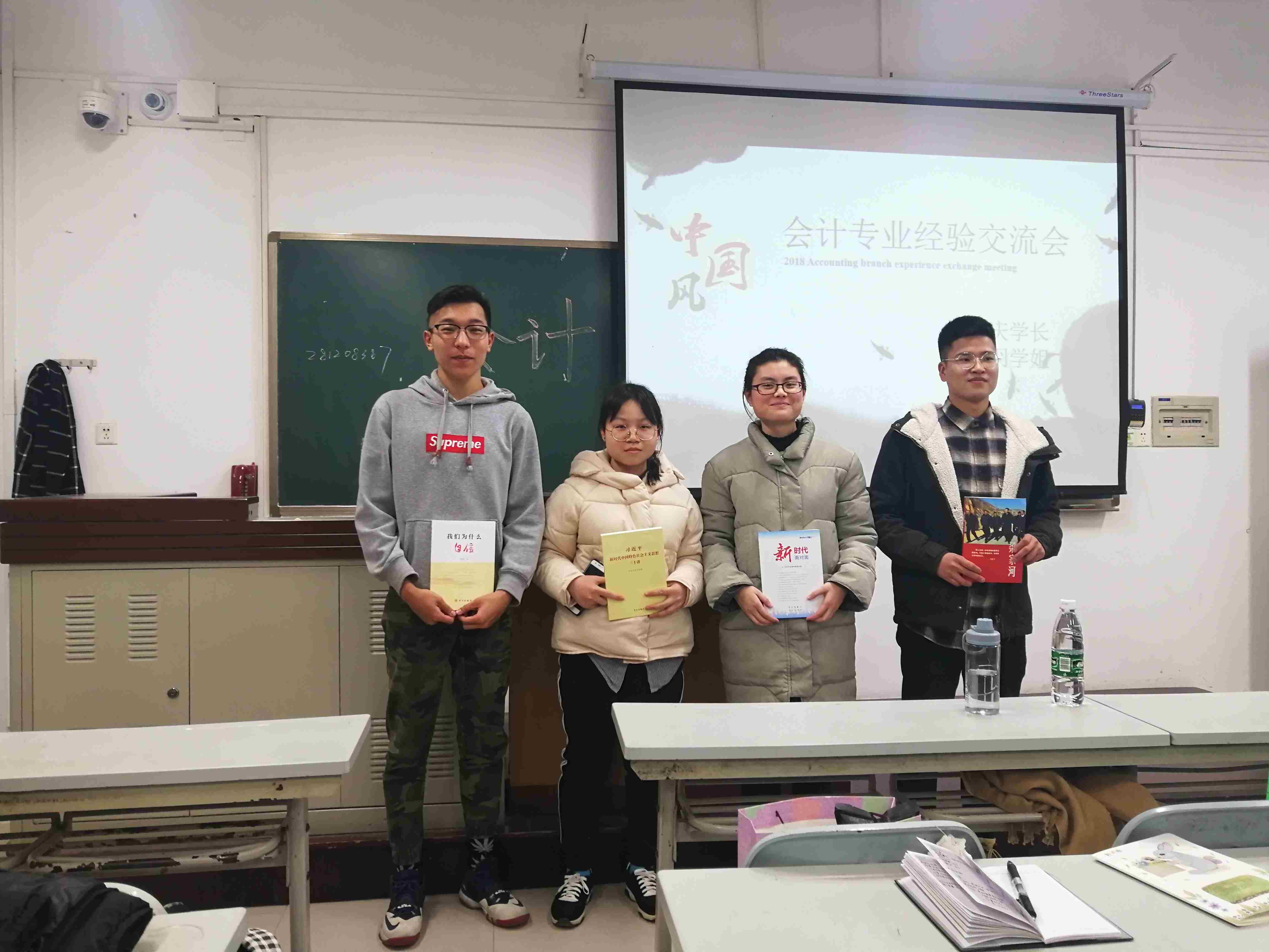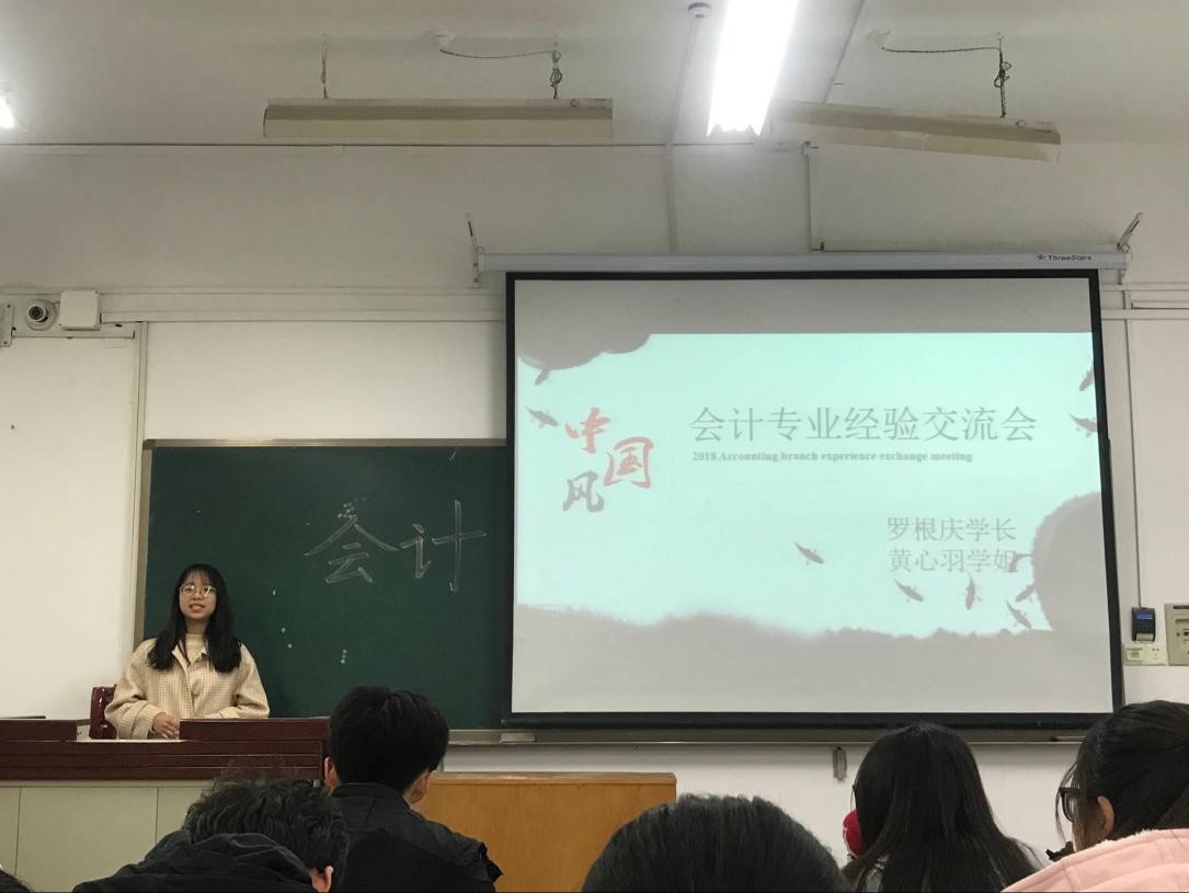 在主持人简短的介绍后,同学们带着热切期盼的眼神迎来了“传说中”保研的学霸。首先是由保研到上海财经学院会计学院的黄心羽学姐上台发言,她依次从学习成绩、大学英语学习、科研及比赛三个方面为同学们进行了介绍。针对会计专业的保研,她说学习成绩依旧是最重要的部分,同时还有很多保研的基本条件,需要我们在课余的时间关注最新的政策,做充分的准备。当然,天道酬勤,所有的成功背后都洒满了奋斗的汗水。紧接着是会计党支部的组织委员罗根庆学长。他先跟大家介绍了申请入党的流程,解决了一些想入党的同学的困扰。其次,他跟我们详细介绍了大学四年的规划以及前三年取得的成绩。他跟我们说,学习是老员工活里面最重要的一件事,但娱乐、员工工作和学习也要协调好。丰富多彩的老员工活是我们青春里最浓厚的一笔。