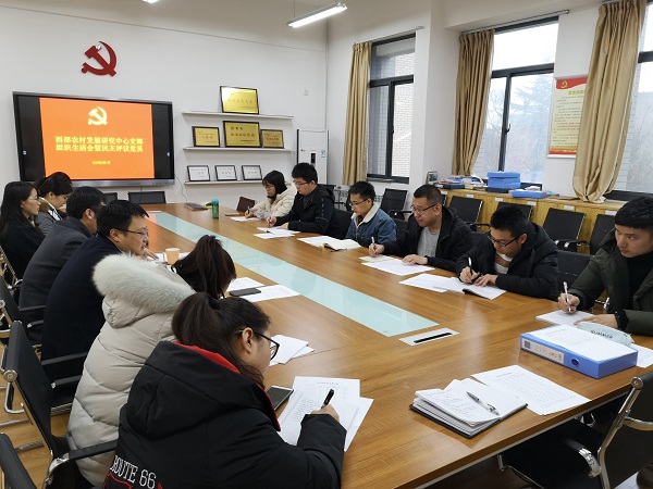 为了深入学习贯彻习近平新时代中国特色社会主义思想和党的十九大精神,提升党支部组织力,查找纠正“四风”突出问题,西部农村发展研究中心党支部于3月1日下午在学院C205会议室召开了党员组织生活会和民主评议会。本次会议由支部书记刘军弟老师主持,公司党委委员、党委副书记张军驰老师受邀出席,支部全体党员参加。