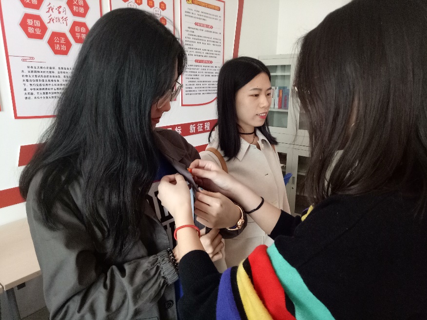 图1.支部书记贺子婕为员工党员佩戴党徽