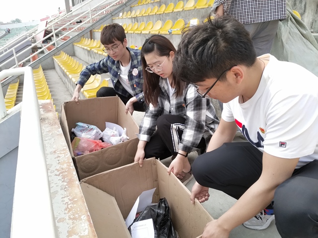 活动伊始,负责人廖钎铅强调本次实践活动主题为志愿服务校运动会,全体支部成员必须以饱满的热情与积极的态度做好今日的服务工作。在合理分配工作任务后,支部党员佩戴党徽分三批进入会场。首先,支部成员加入为学院加油助威队伍,震耳欲聋的呐喊声展示出青年党员的激情与活力,坚定地击鼓声带来青年党员的热情与荣誉感。部分成员主动承担起维护学院观众席纪律的责任,严谨又温和的提醒,展现出当代青年党员的良好使命感与责任感,对纪律性的坚守与严格,体现了良好的党组织教育成果。最后,支部成员加入学院观众席清理工作,以小见大地积极响应党组织对生态文明建设的要求,青年党员主动从日常生活做起,积极响应习近平总书记所倡导的“要像保护眼睛一样保护生态环境”,时刻牢记党组织的教诲。
