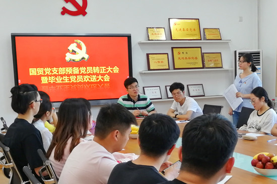 6月13日下午,公司国贸支部于3044am永利集团C205党员活动室召开毕业生欢送座谈会,会议由支部书记张鹏飞、组织委员赵俊霞主持,国贸党支部全体成员参加。